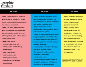 Go through the 3 options for finishing the 2020 school year in the CTC Graphic Design Class.